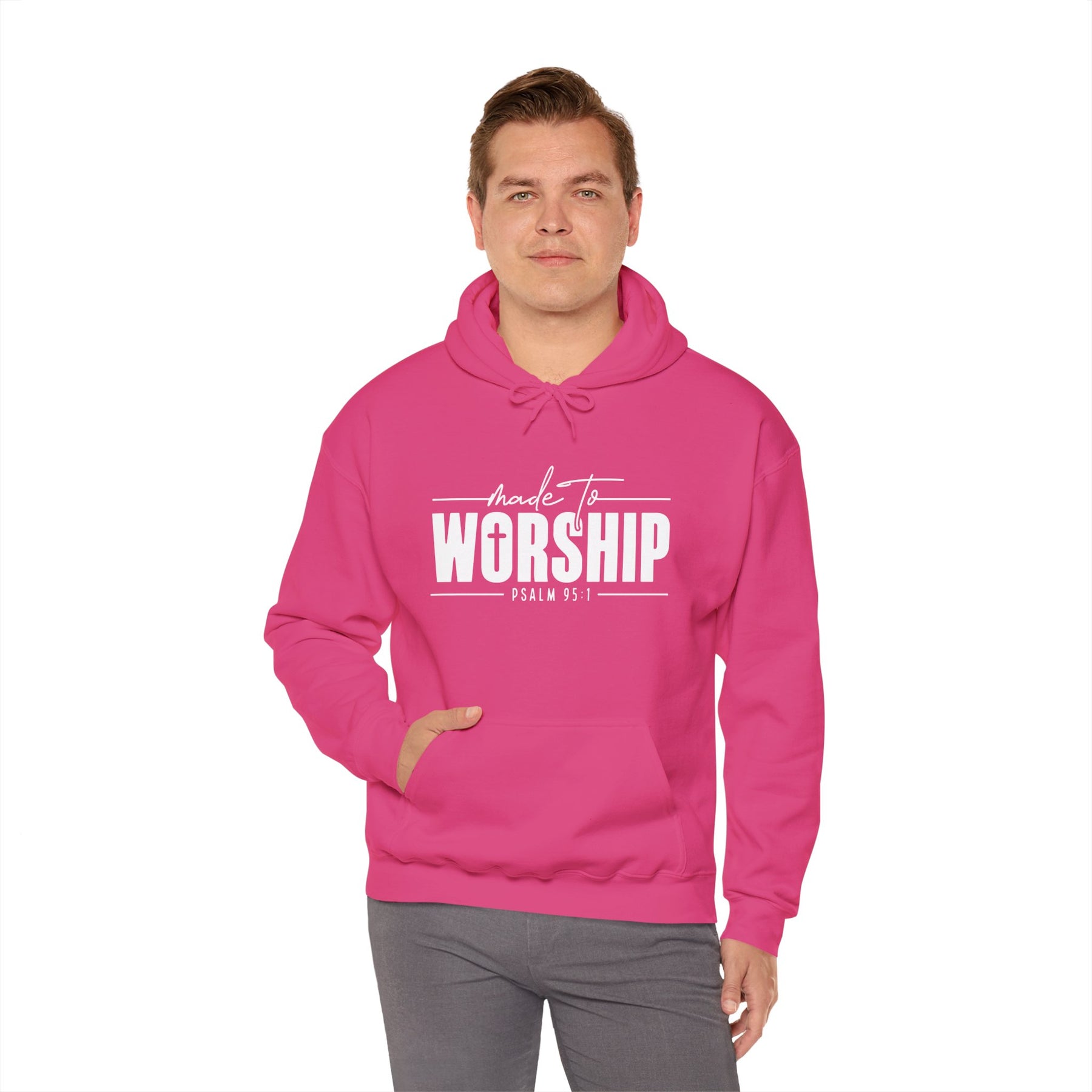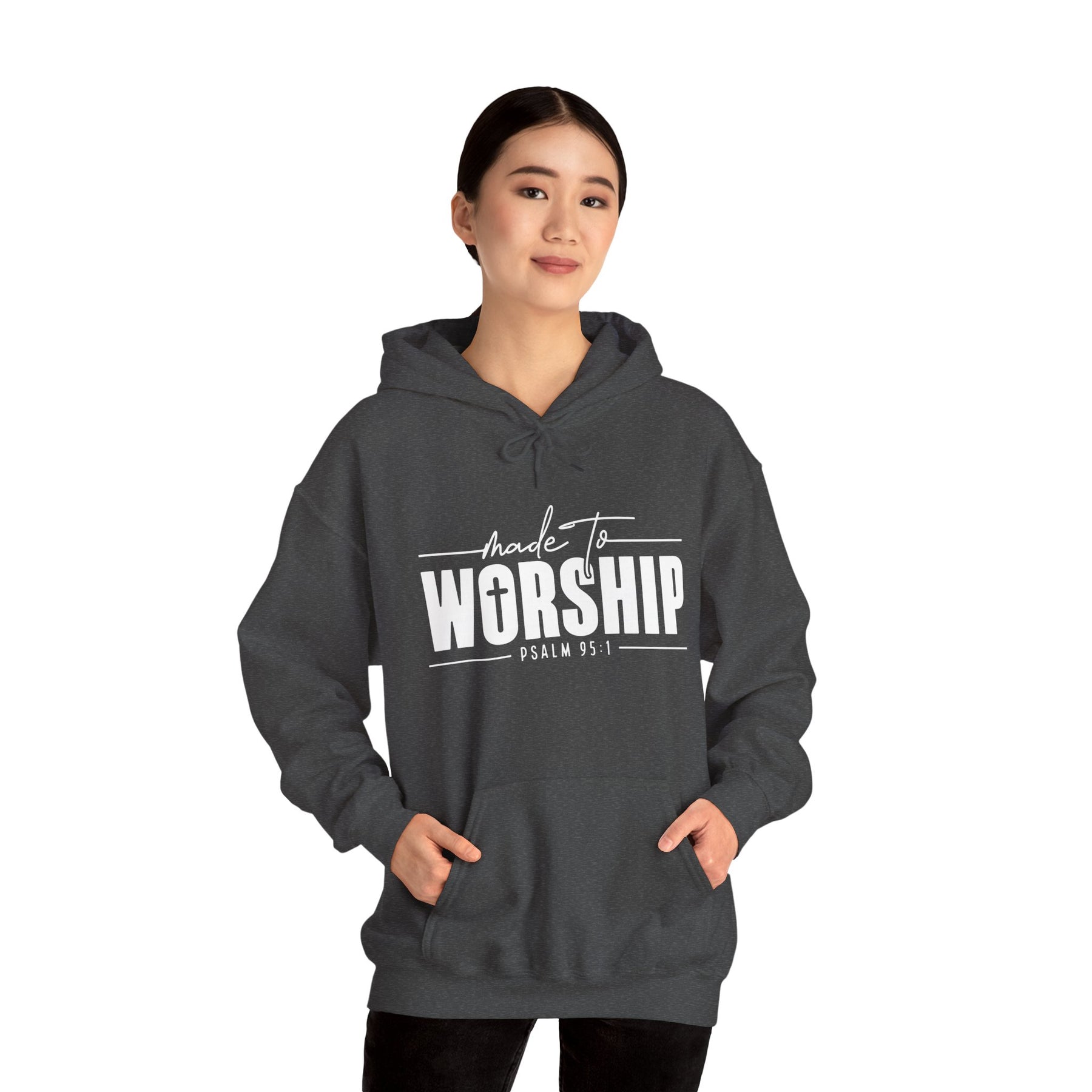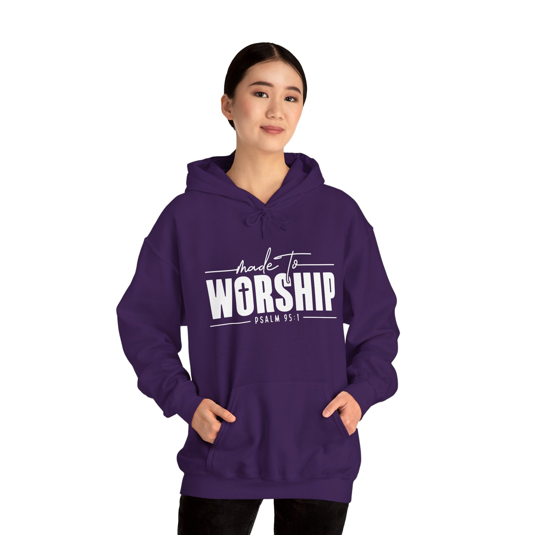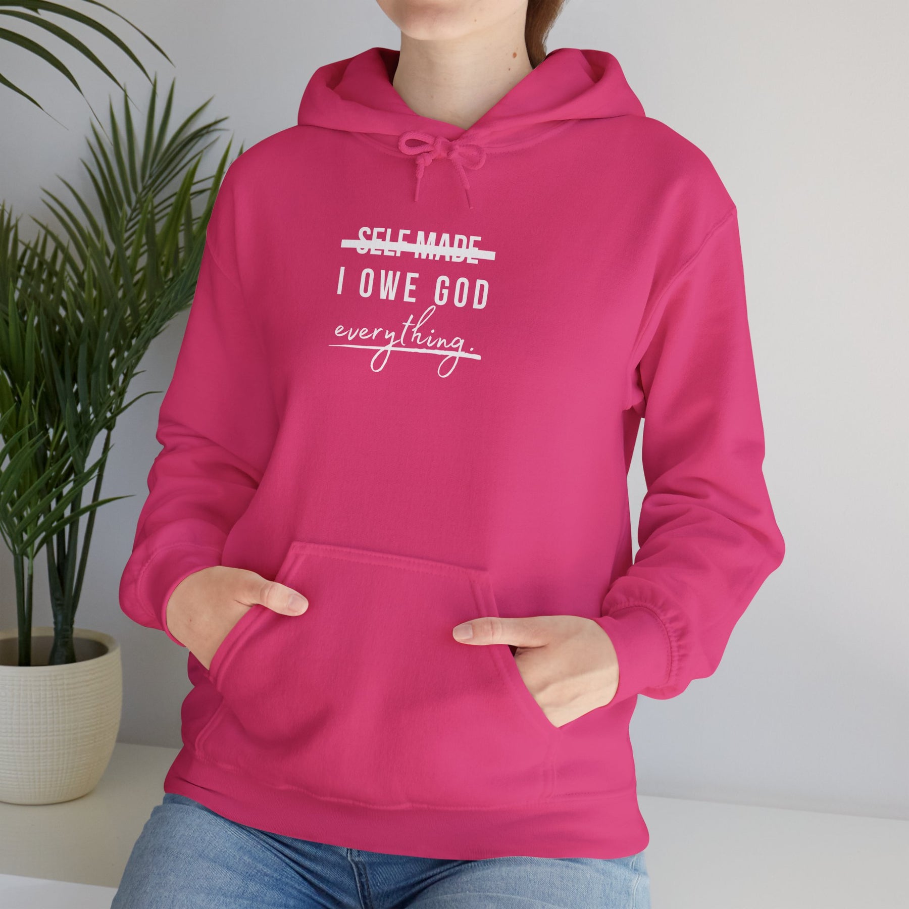 This unisex heavy blend hooded sweatshirt is relaxation itself. Made with a thick blend of cotton and polyester, it feels plush, soft and warm, a perfect choice for any cold day. In the front, the spacious kangaroo pocket adds daily practicality while the hood's drawstring is the same color as the base sweater for extra style points.